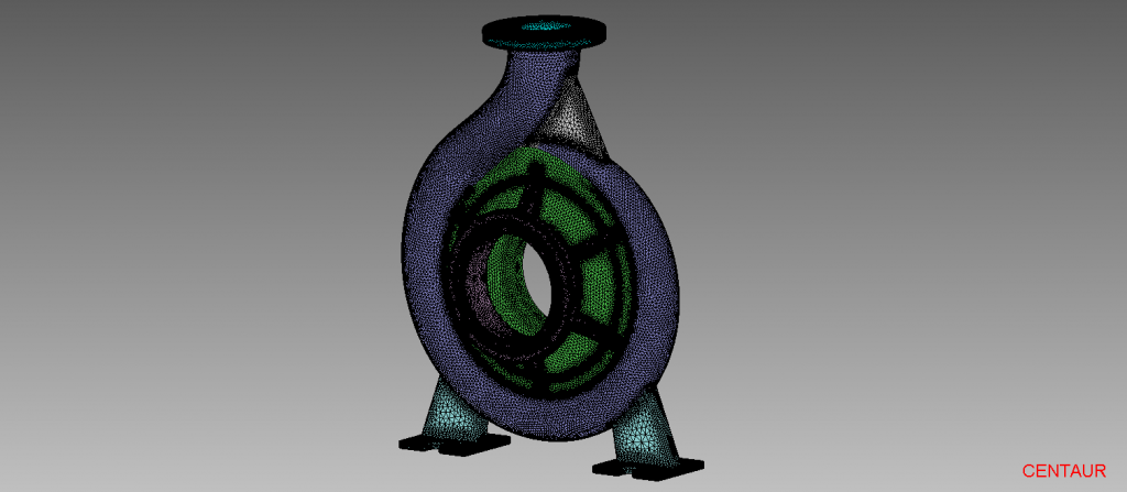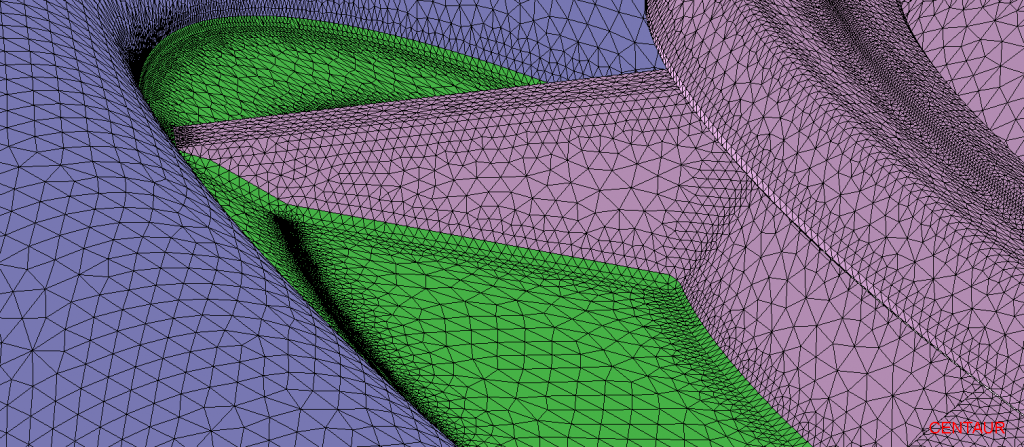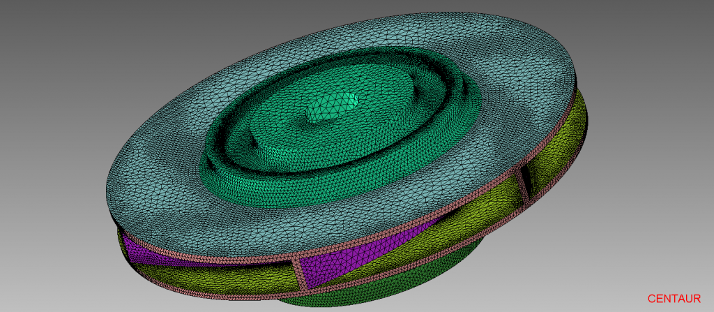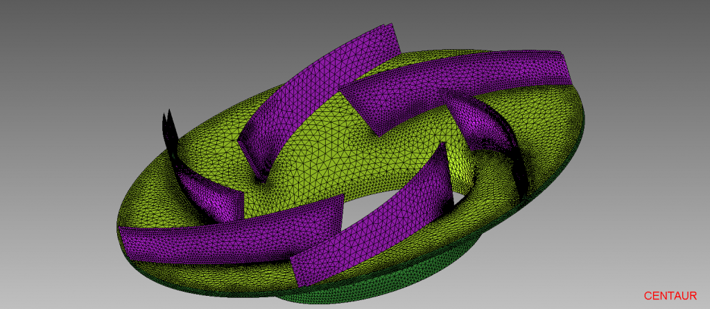 These two geometries represent the impeller and volute casing of a radial centrifugal pump. Each component was meshed separately using CENTAUR to capture its distinct flow features.