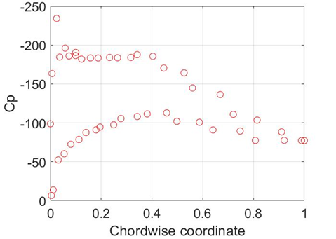 Pressure distribution on a blade section (spanwise location y / b = 0.95)